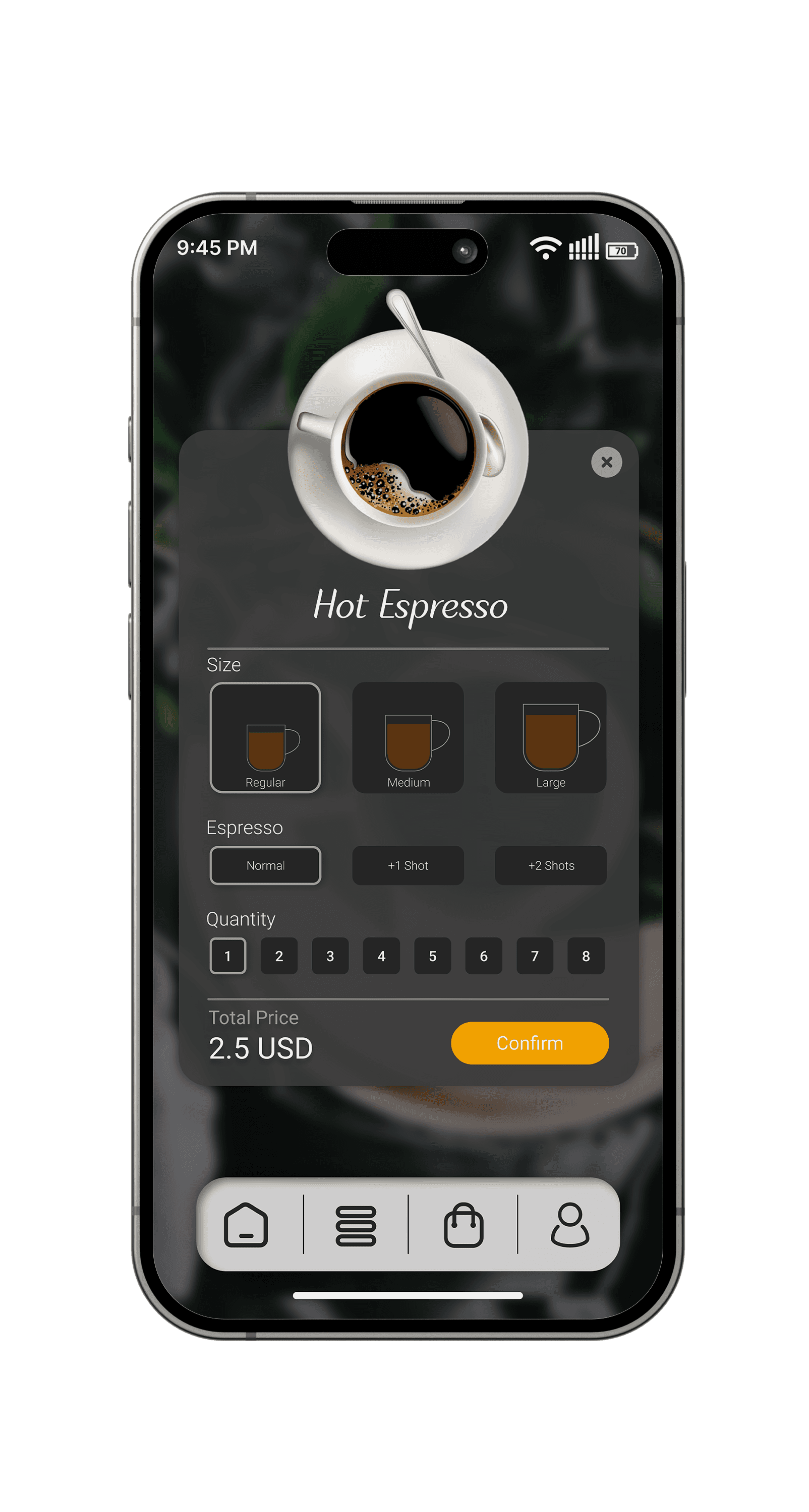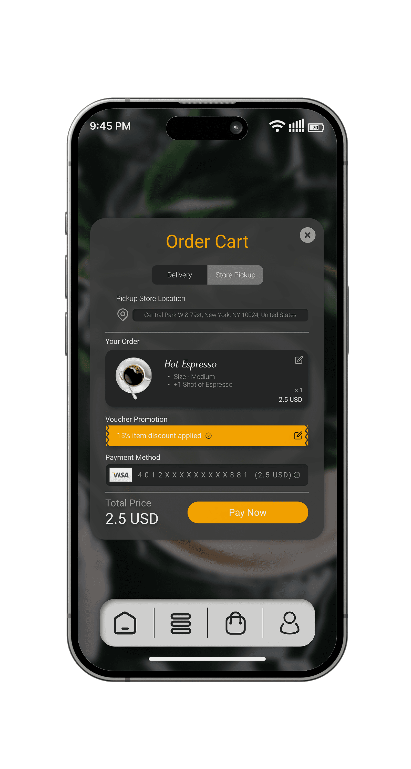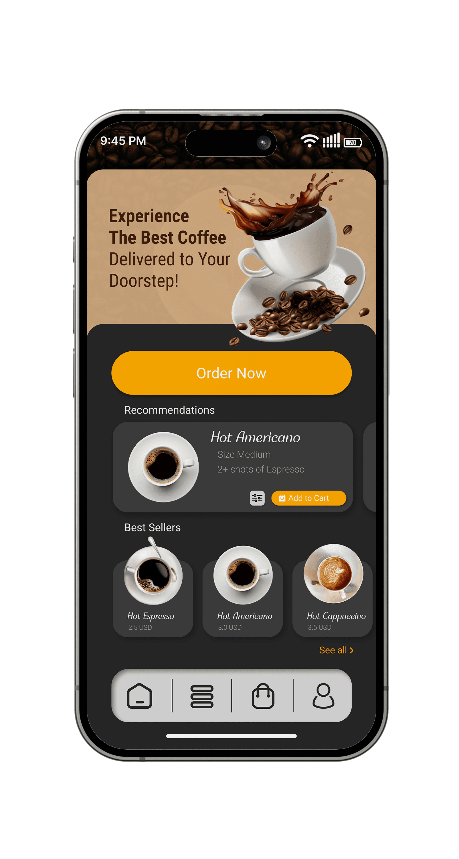 Improve the coffee-ordering experience by designing a user-friendly and visually appealing mobile app that allows users to order coffee for pickup, dine-in, or delivery seamlessly.
