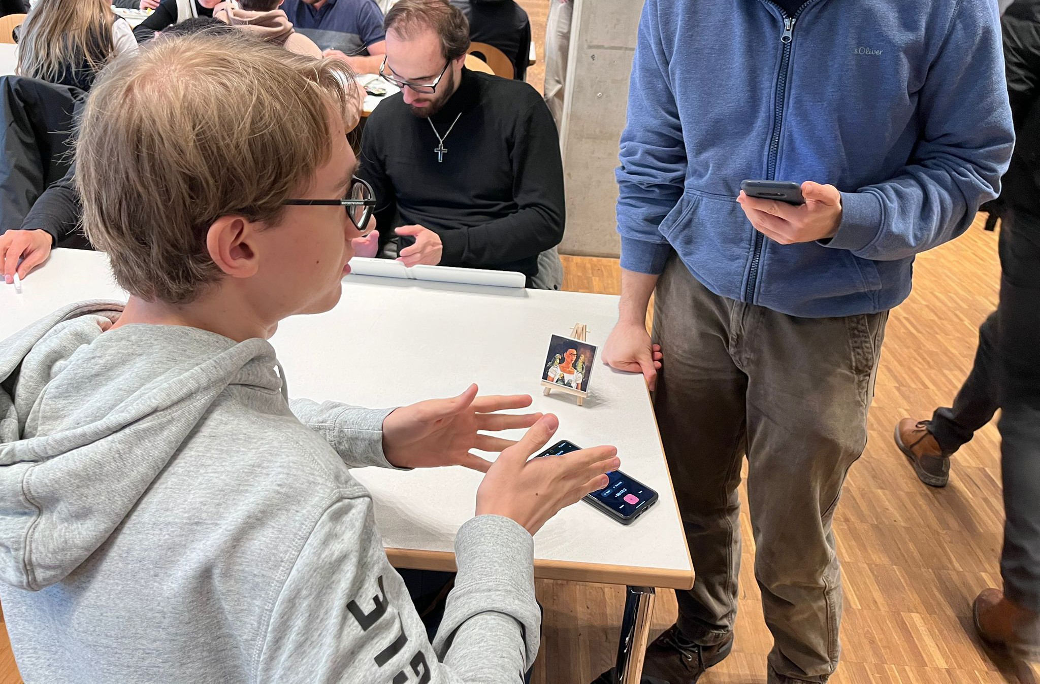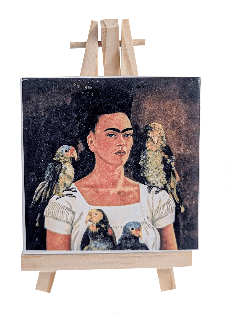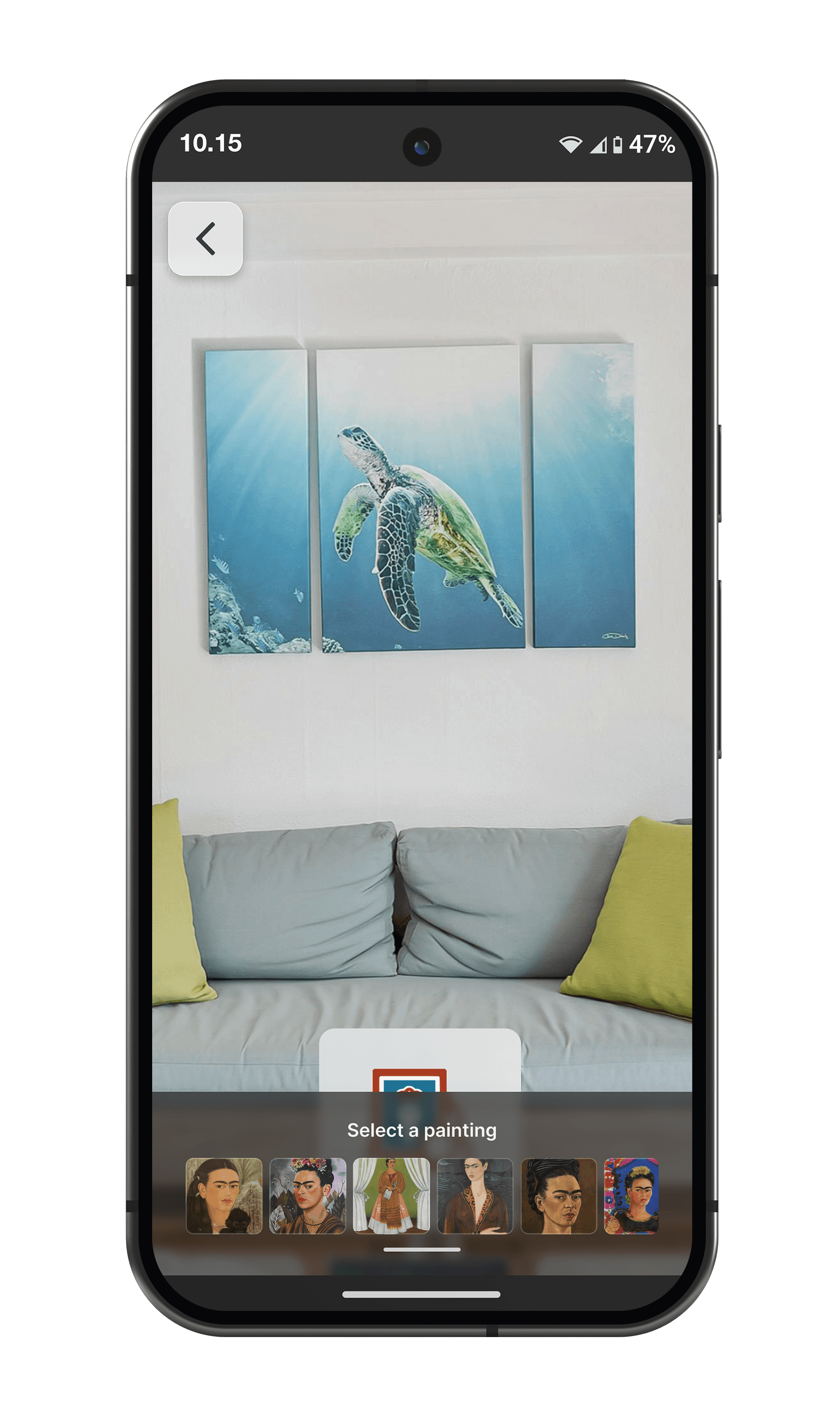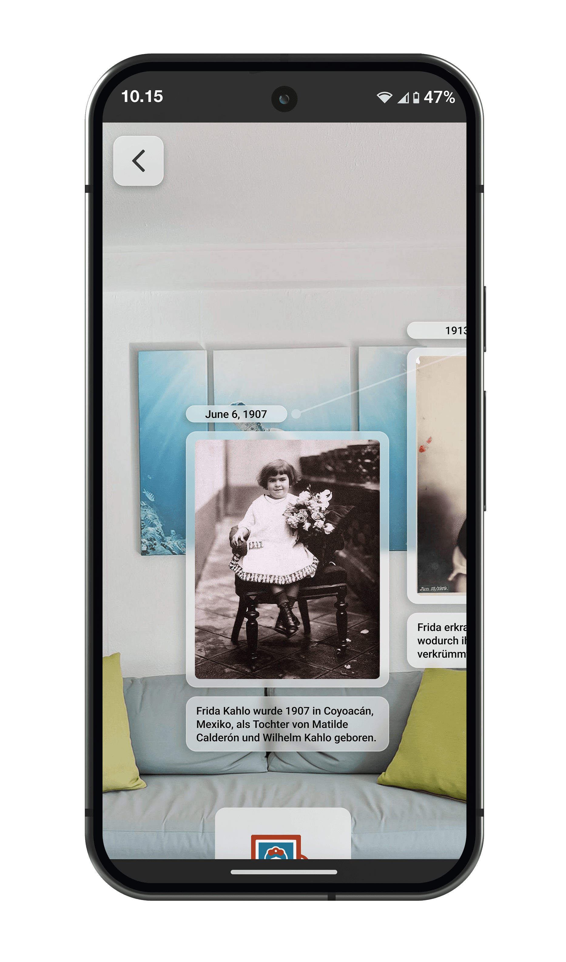 The analogue object in our AR experience is a 7.5 cm x 7.5 cm painting canvas, featuring Frida Kahlo’s self-portrait. This physical canvas serves as a tangible bridge between the real and digital worlds, allowing users to scan it with their smartphone. Once scanned, an interactive AR experience unfolds, bringing Frida Kahlo’s art and story to life in 3D. The canvas enhances immersion, making the AR interaction feel personal and engaging while preserving the essence of traditional art in a modern, mixed-reality format. This seamless blend of physical and digital realms creates a unique storytelling experience for users.