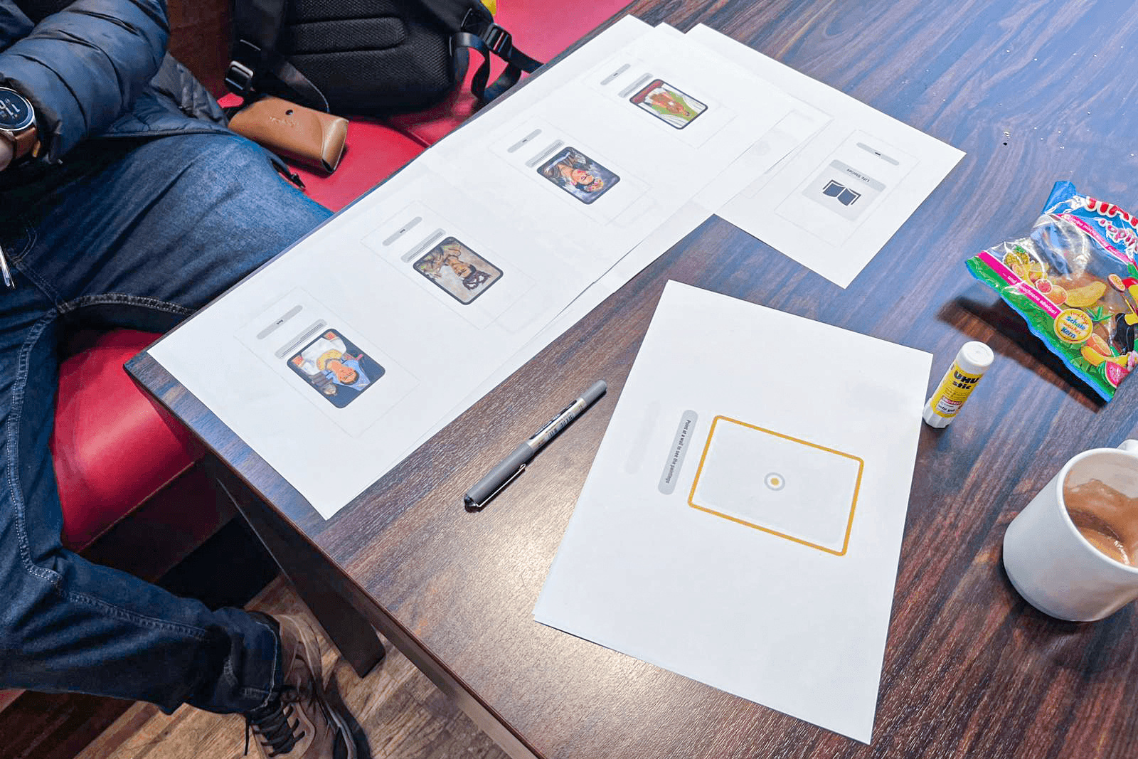 By crafting a paper prototype a first user test was initiated. The main goal for this session was to gather information about how customers react to features. It was also observed how people navigate through the prototype.