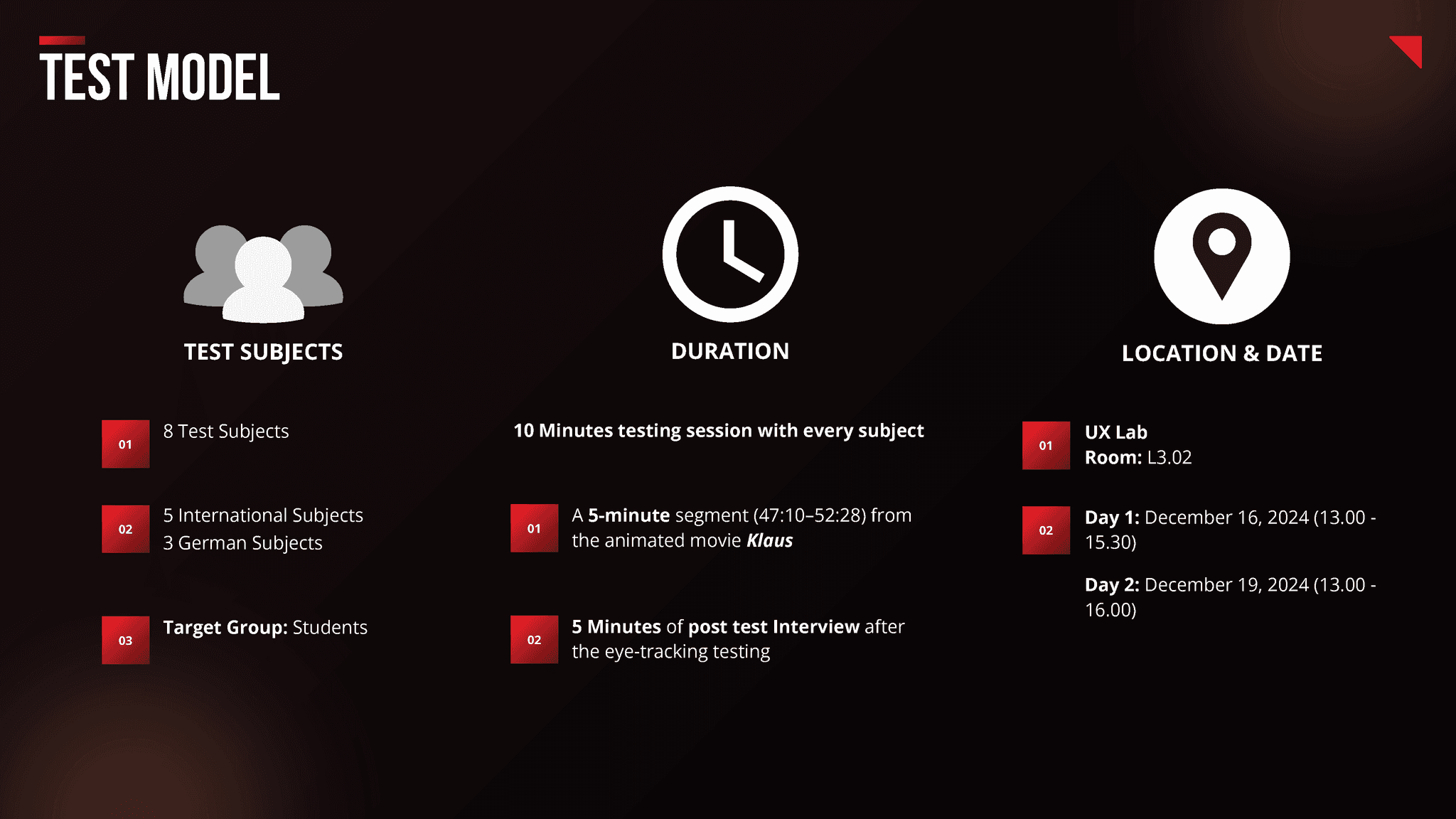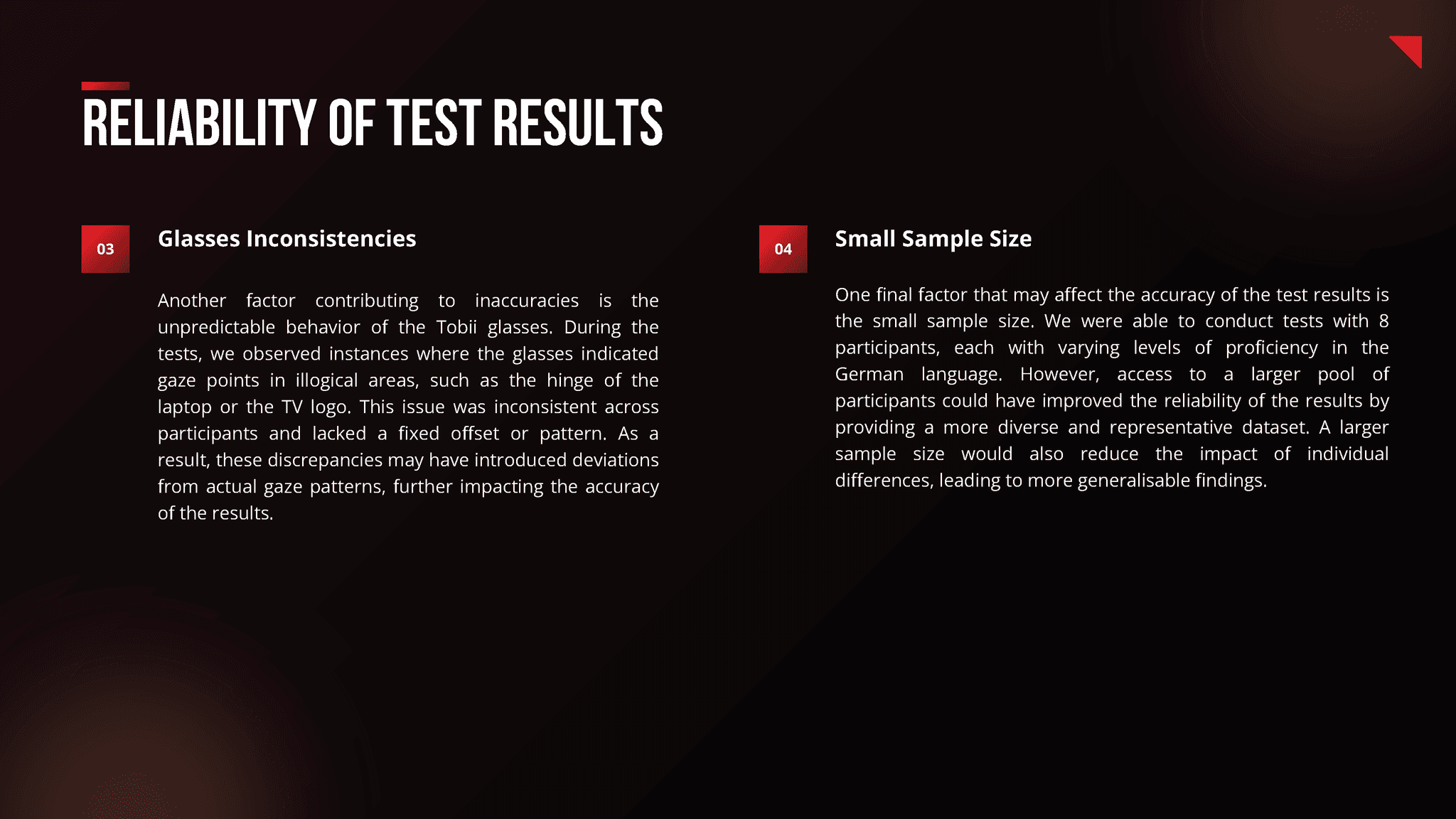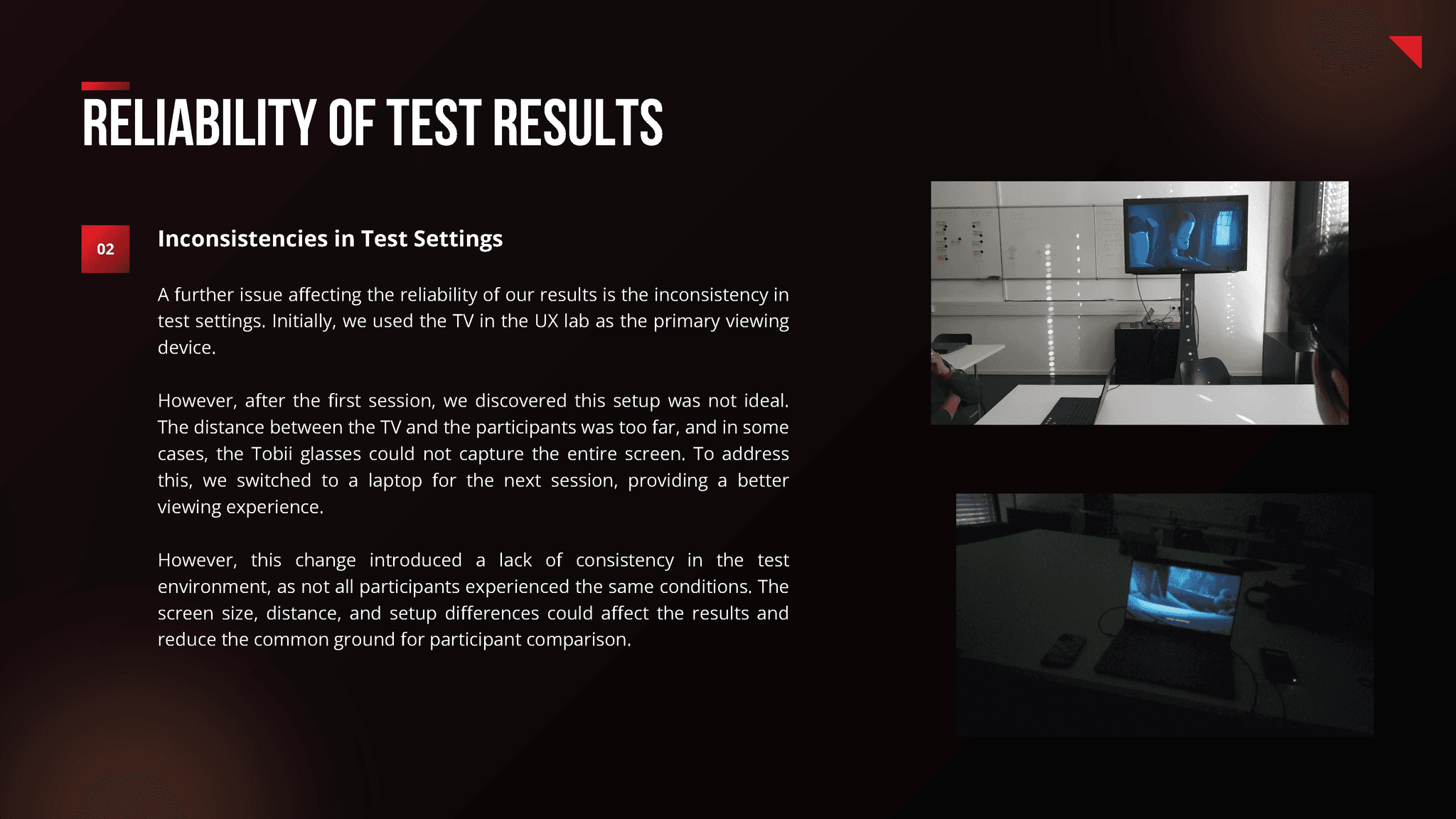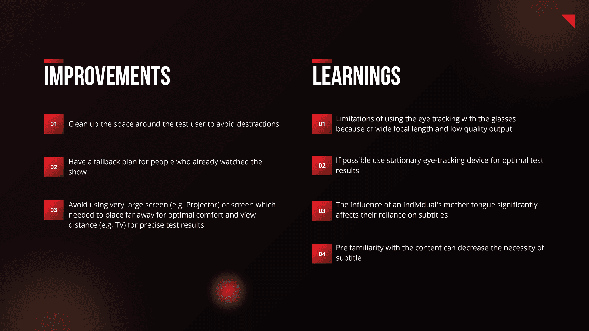 ✔ Managing all aspects related to the Tobii Pro eye-tracking glasses, including setup for optimal test conditions.