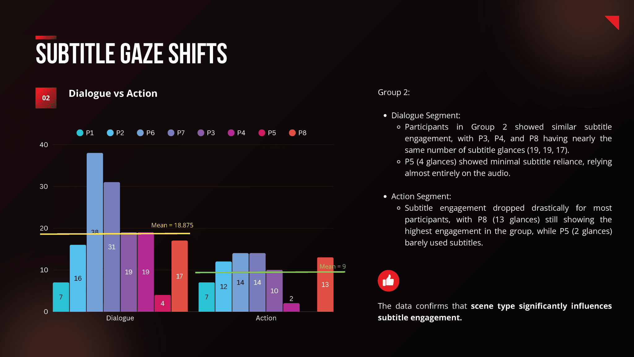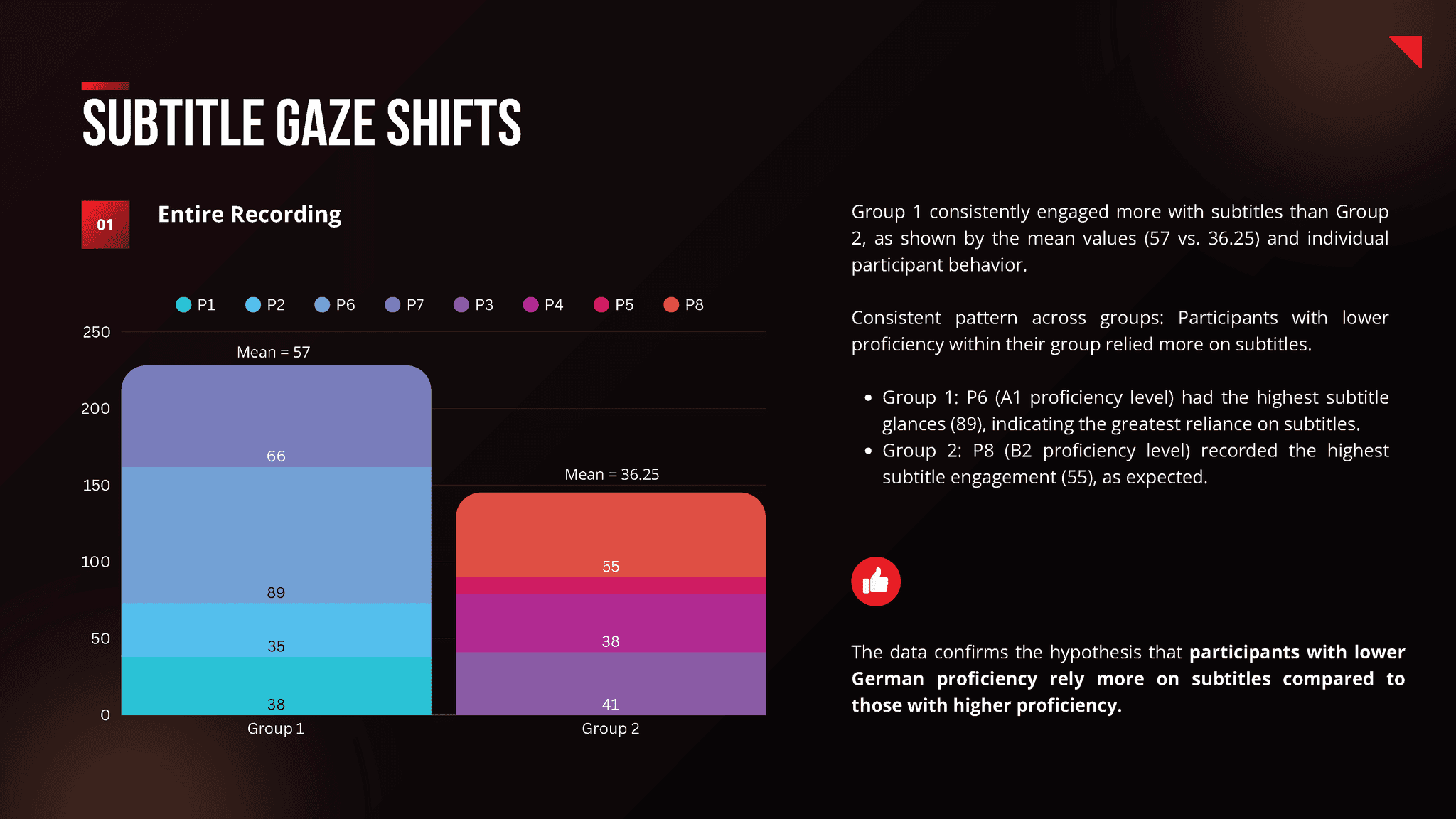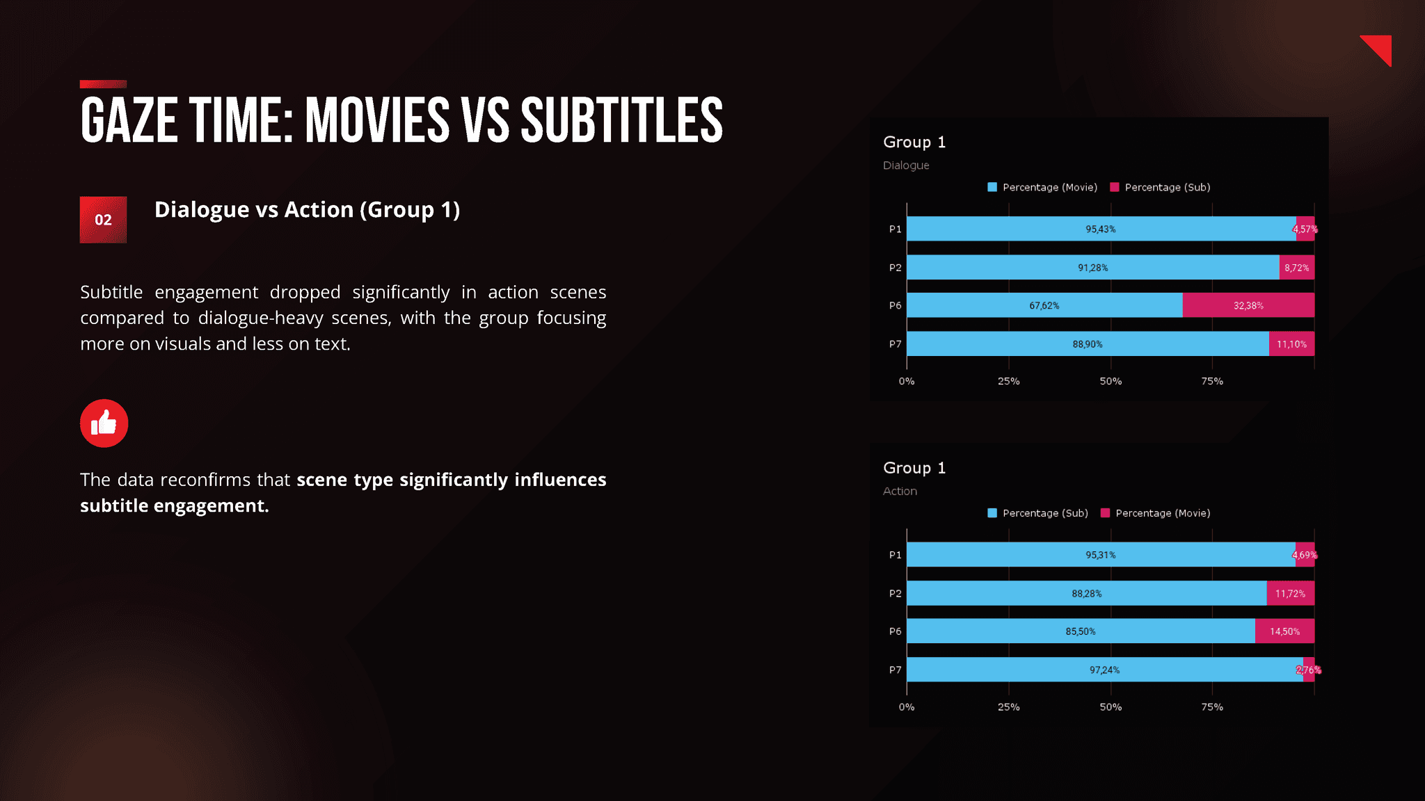The research revealed that lower German language proficiency users relied heavily on subtitles, while higher-proficiency users used them for occasional clarification or due to reflex. Subtitles proved more engaging during dialogues than action scenes and served as a secondary clarification tool rather than a primary source of information.