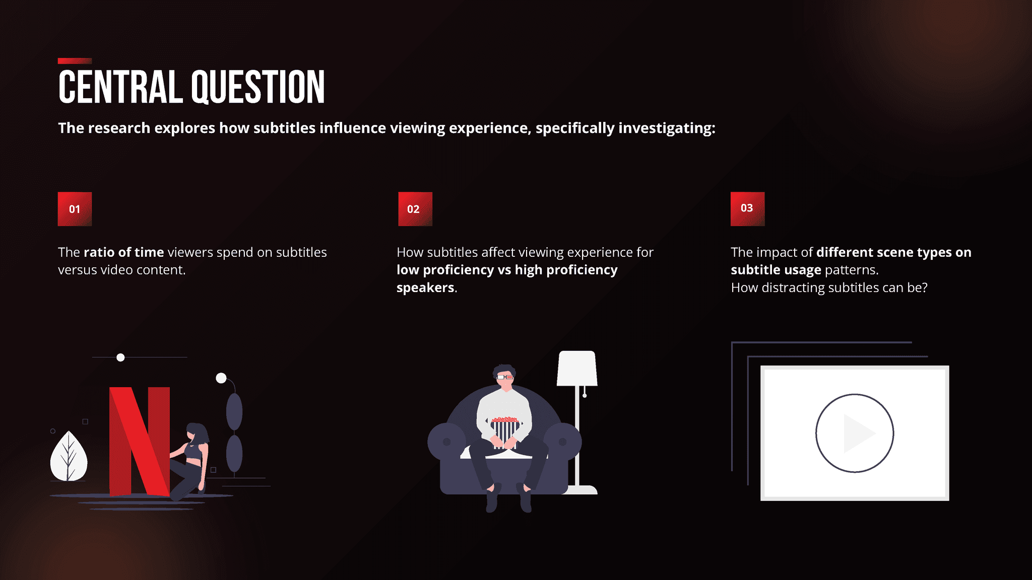To examine how subtitles influence the viewing experience across different language proficiency levels and how usage varies based on video content.
