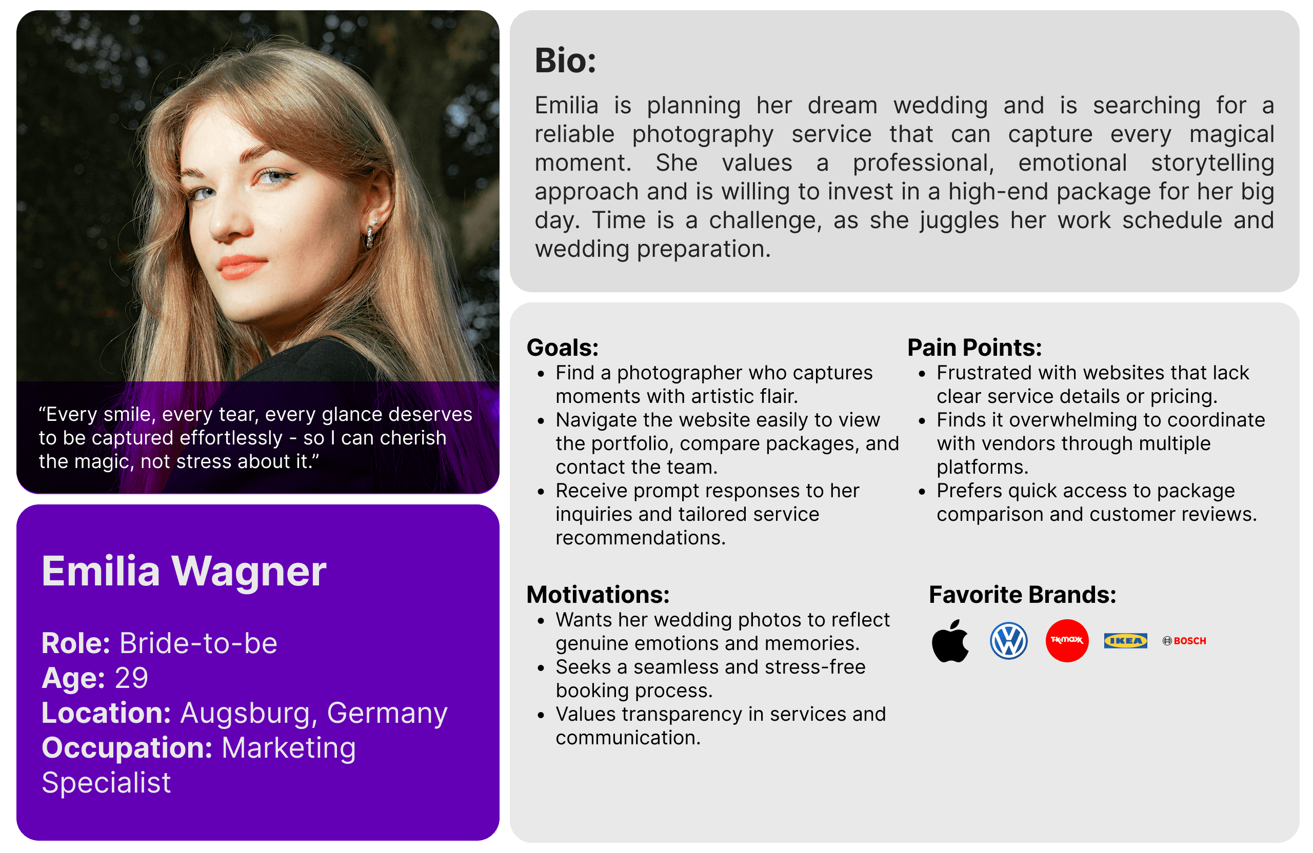 Clients: Couples seeking professional wedding photography services.