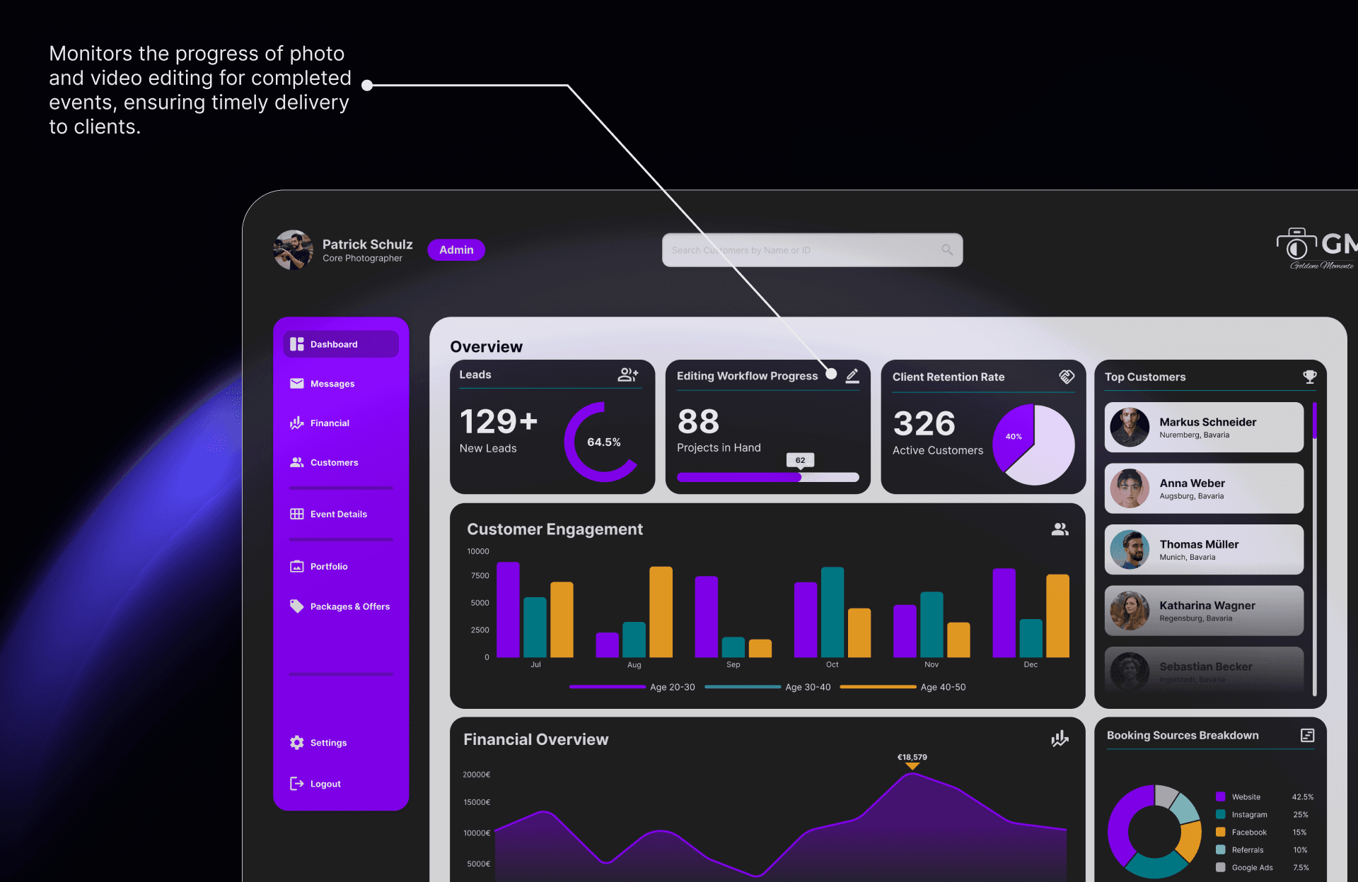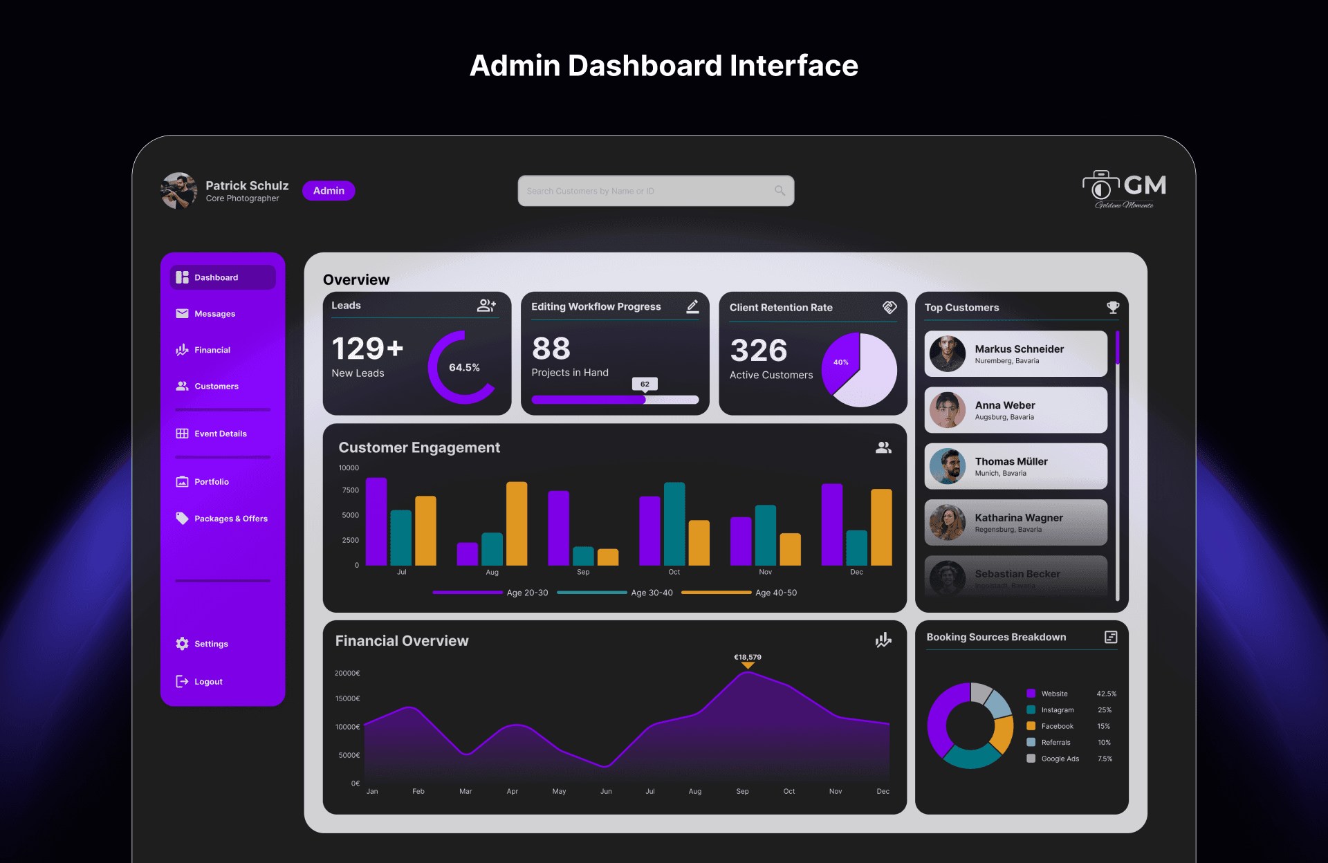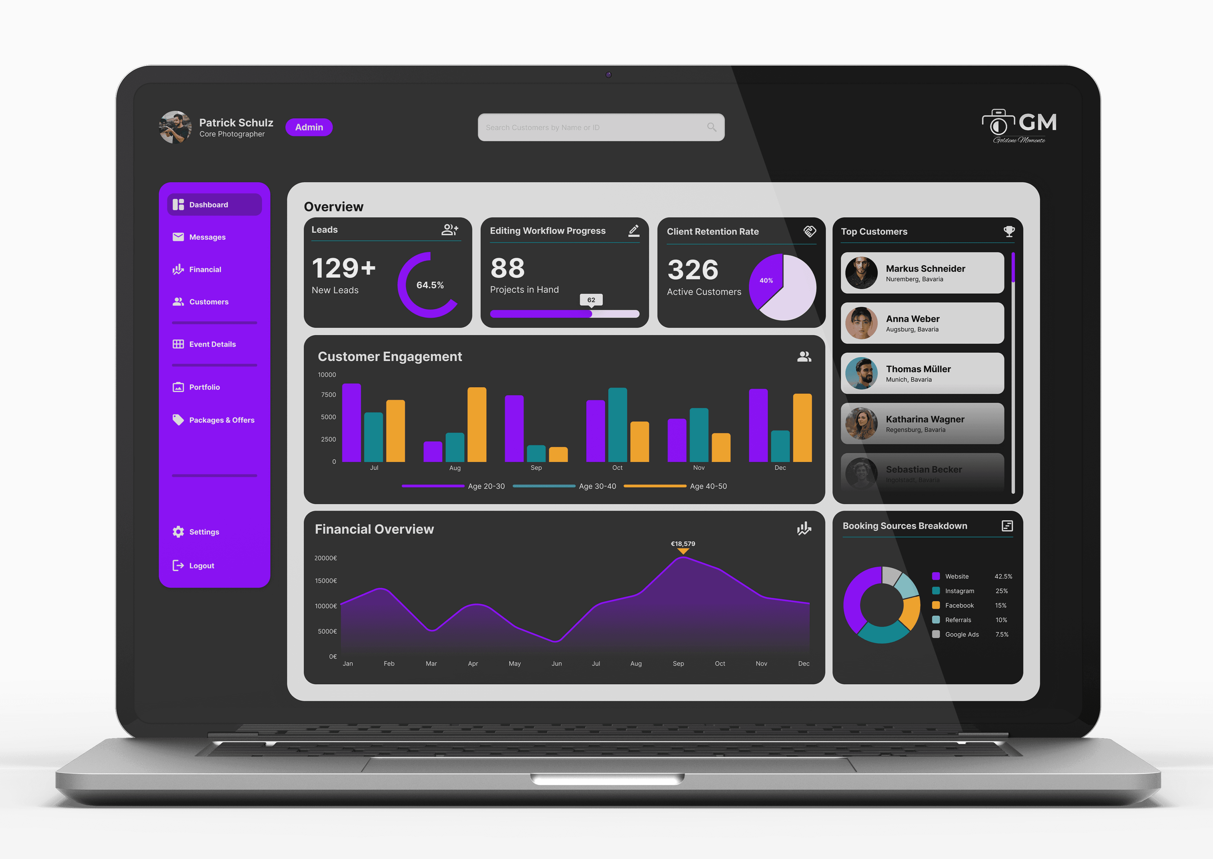 As part of my creative development journey, I undertook the design of a comprehensive website and dashboard system for a wedding photography company, Goldene Momente. This practice project serves as an opportunity to hone my skills in UI/UX design, interactive systems, and data visualization, while showcasing real-world applications.