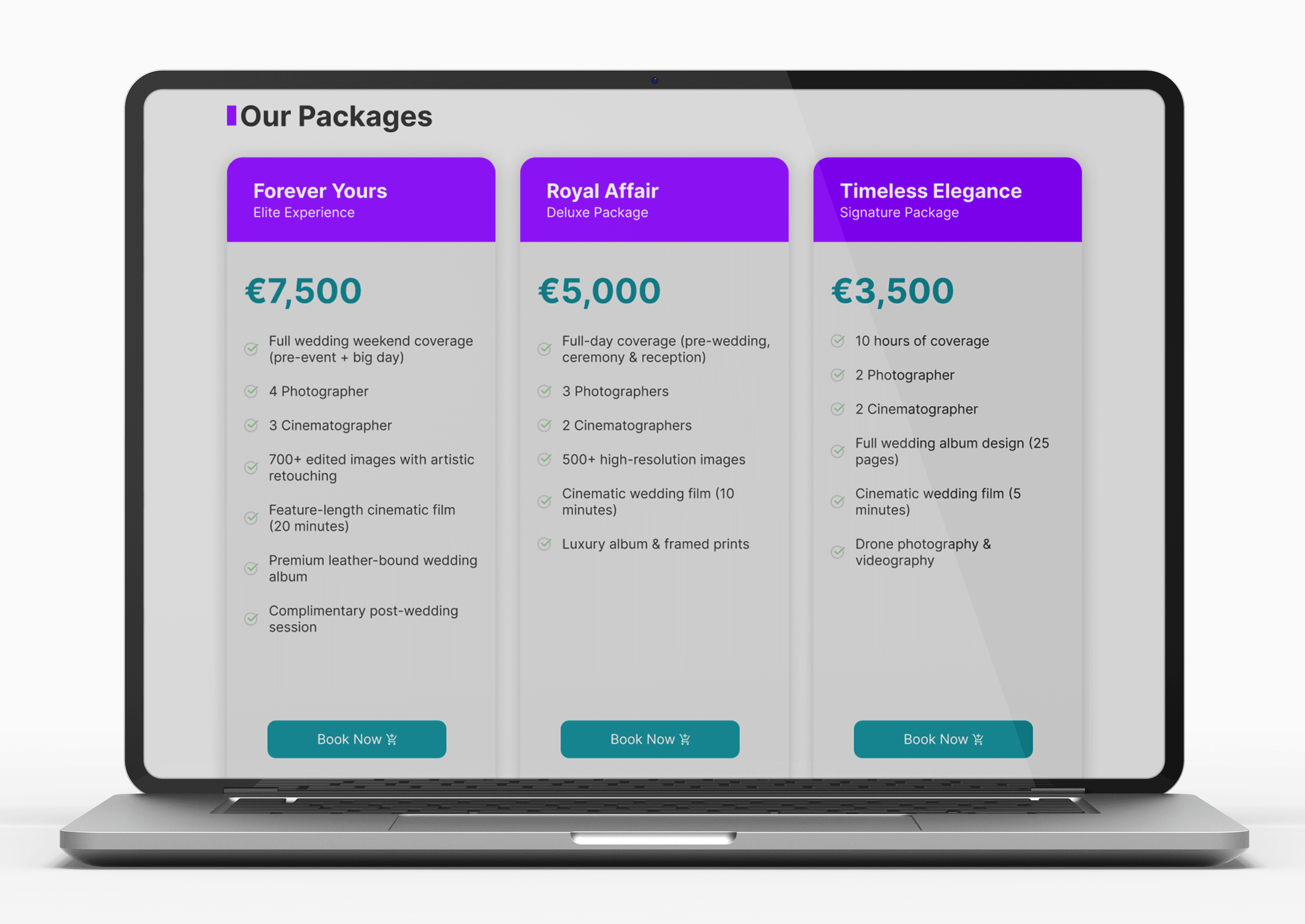 ✔ Responsive Website: Portfolio showcase, package details, and intuitive navigation.