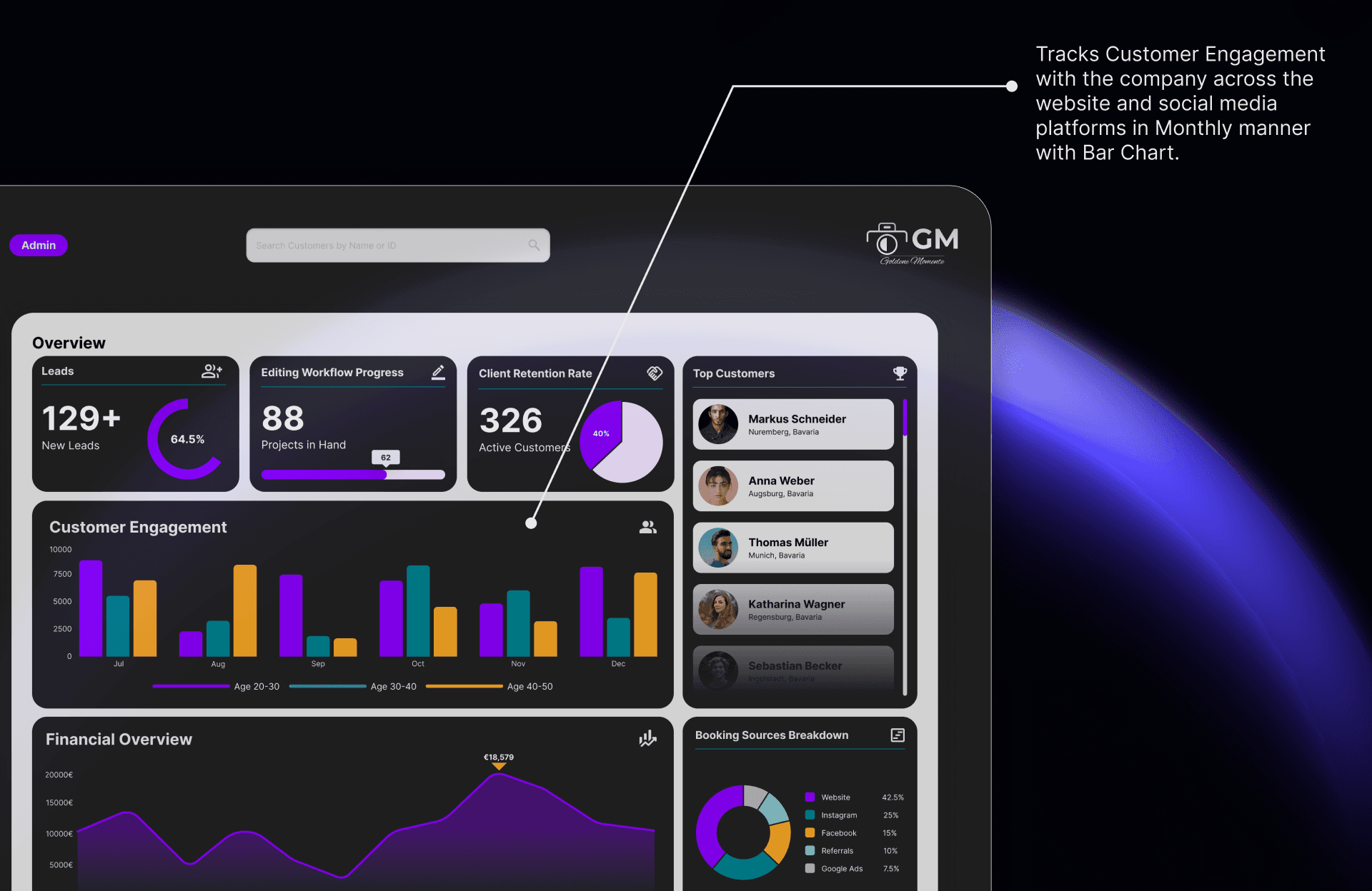 This research phase led to the creation of a hypothetical company, Goldene Momente, with its own website and dashboard. By treating this project as a real-world client scenario, I explored solutions that are both functional and visually appealing.